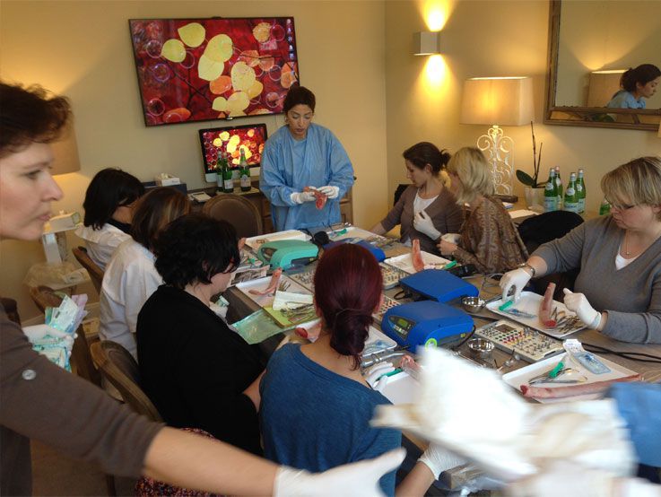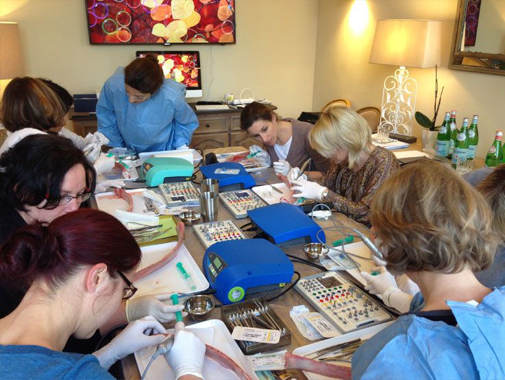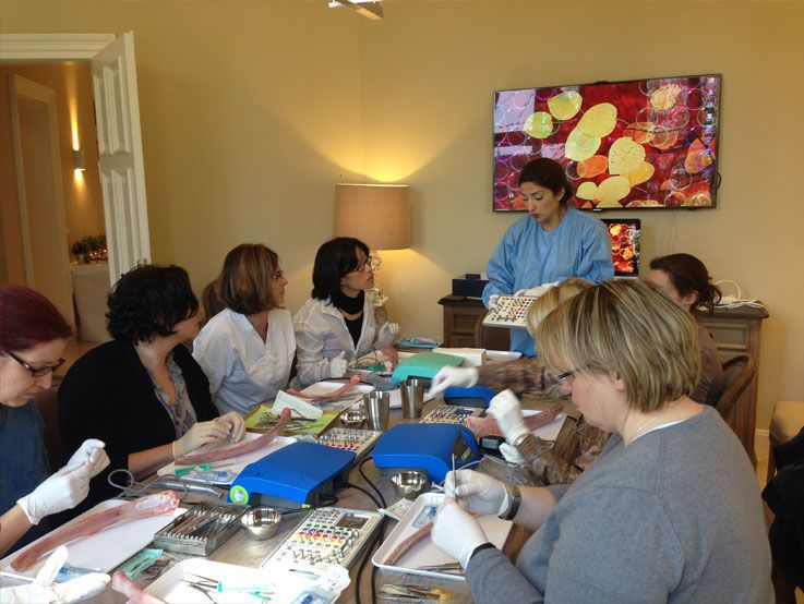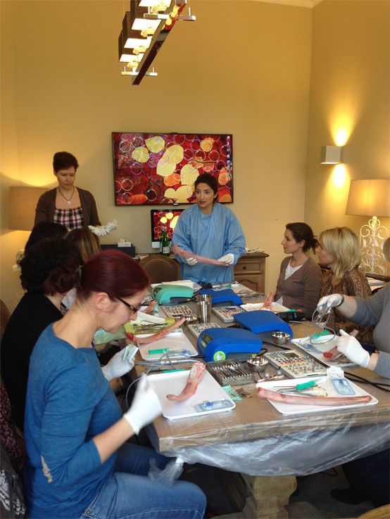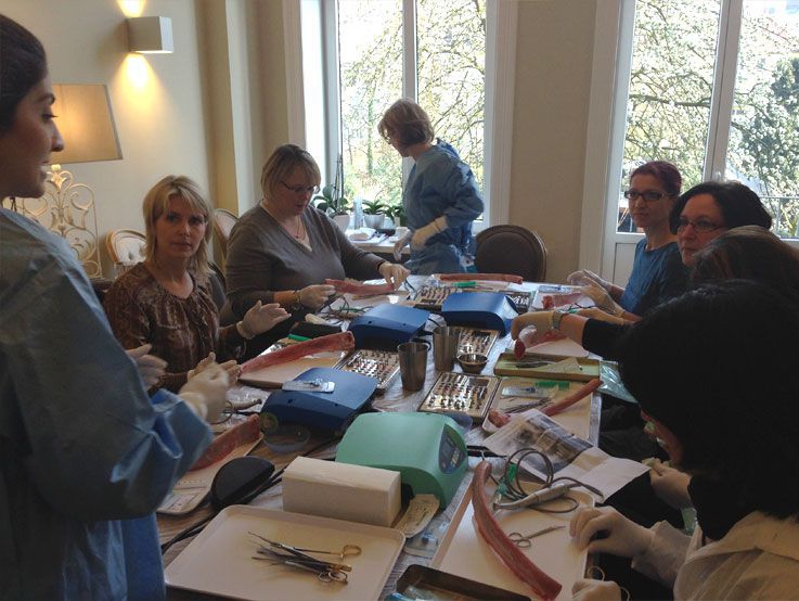 Am 28. und 29. März 2014 fand in unseren Räumen wieder die bewährte Fortbildung "For Ladies only: Let`s start with implants" statt und bot die ebenso bewährte Kombination aus fundiertem theoretischem Background (Implantat-Planung, OP-Vorbereitung, Umsetzung, Abrechnungsfragen u.v.m.) und praktischem Teil mit Hands-on-Übungen. Pausen und die Zeit danach wurden von den Teilnehmerinnen für anregende Fachgespräche und den Erfahrungsaustausch genutzt.
