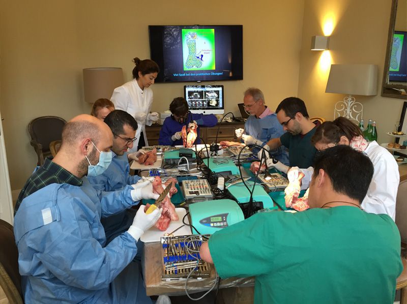 In dem restlos ausgebuchten Kurs konnten die Teilnehmer im kleinen Kreis neue Techniken erlernen, eigene Behandlungsabläufe prüfen und gegebenenfalls optimieren. Unter den fünf Herren und drei Damen (alle fortgeschrittene Behandler) waren zwei Oralchirurgen und ein MKG-Chirurg. Somit waren die Diskussionen lebhaft und bereichernd für alle. Die Teilnehmer haben viel für die tägliche Arbeit in der Praxis mitgenommen und außerdem noch viel Spaß gehabt – wie den Kursbewertungen zu entnehmen war.