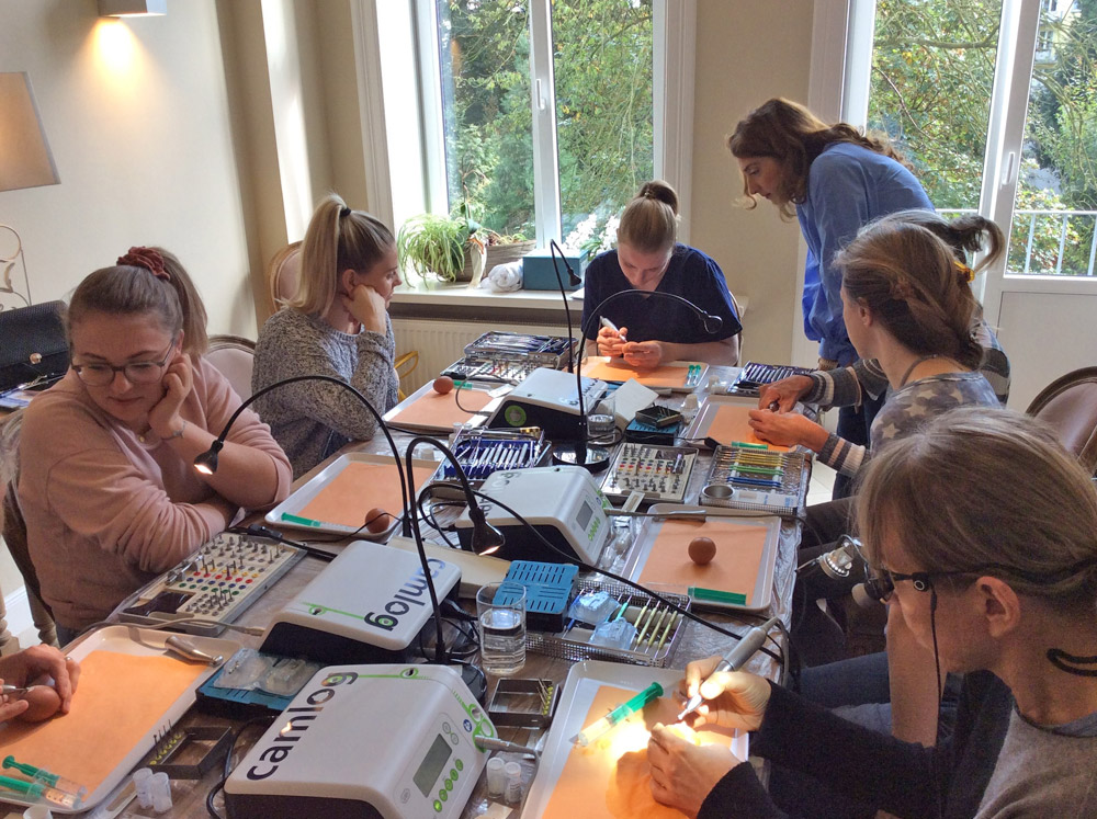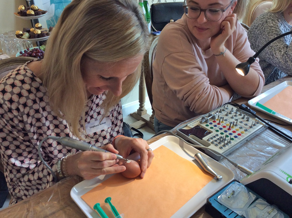 Wir haben uns besonders gefreut, dass wir einige Teilnehmerinnen begrüßen durften, die bereits im Februar beim Einsteigerkurs zu Implantaten dabei waren. Außerdem haben zwei Teilnehmerinnen die weite Anreise aus Wien in Kauf genommen, nur um an unserer Fortbildung teilnehmen zu können – eine der beiden Damen hatte am ersten Kurstag sogar Geburtstag! Daher sehen wir es als große Ehre, dass sie den Kurs trotzdem gebucht hat.