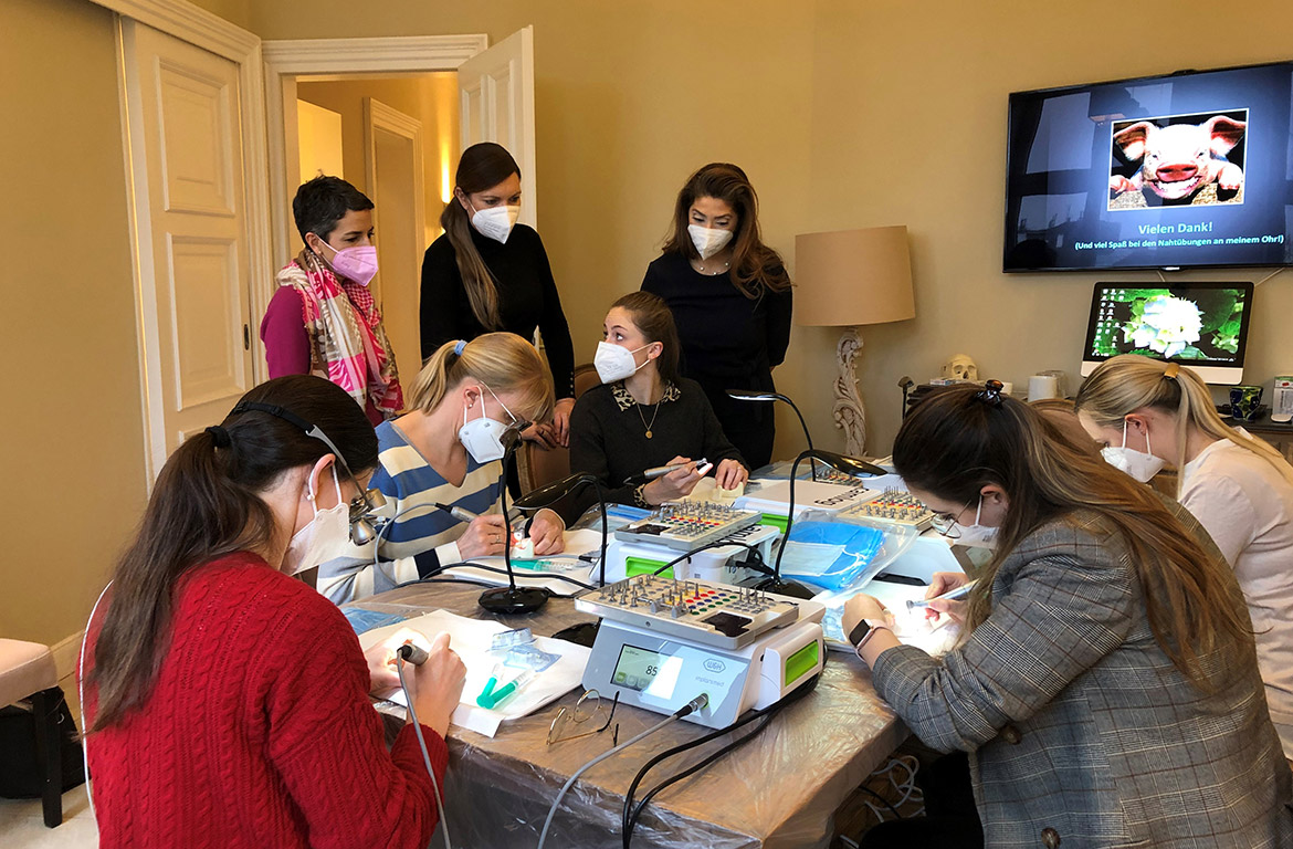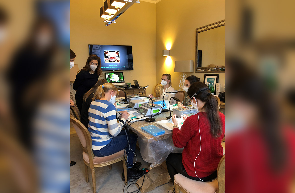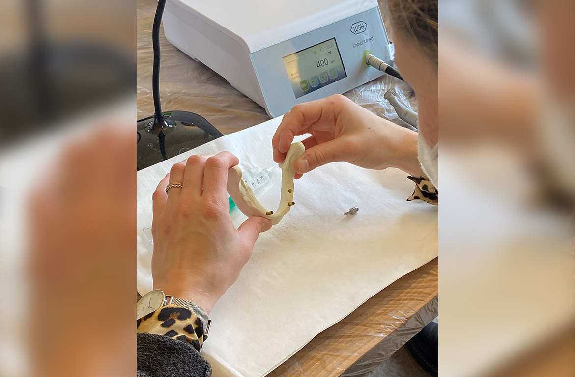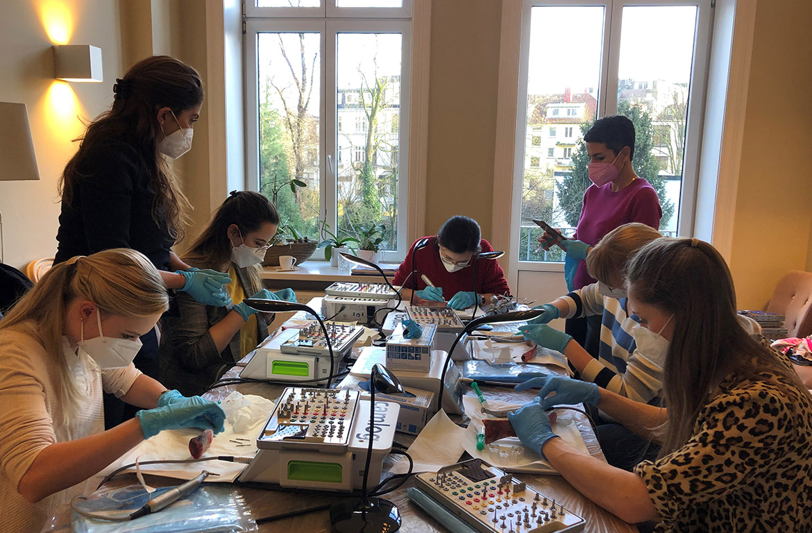 Die Teilnehmerinnen konnten sich an diesem Wochenende umfangreiches theoretisches Wissen und praktische Fertigkeiten aneignen. Alle waren extrem wissbegierig, sodass wir sogar manche Pausen ausfallen ließen, weil es viel Interessantes zu besprechen und viele Fragen zu diskutieren gab. Auch diese Begeisterung für das für einige noch ganz neue Thema Implantologie freut uns sehr.