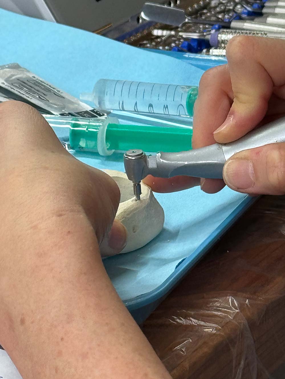 Den Anfang machten am Freitagnachmittag zwei Live-Operationen. Am Samstagvormittag ging es zunächst mit dem theoretischen Background weiter. Nachmittags standen Fallplanungen und praktische Übungen an Kunststoffkiefer und Tierpräparaten auf dem Programm. Wie immer gab es zwischendurch und in den Pausen Gelegenheit für den Erfahrungsaustausch, die Diskussion und interessante Gespräche.