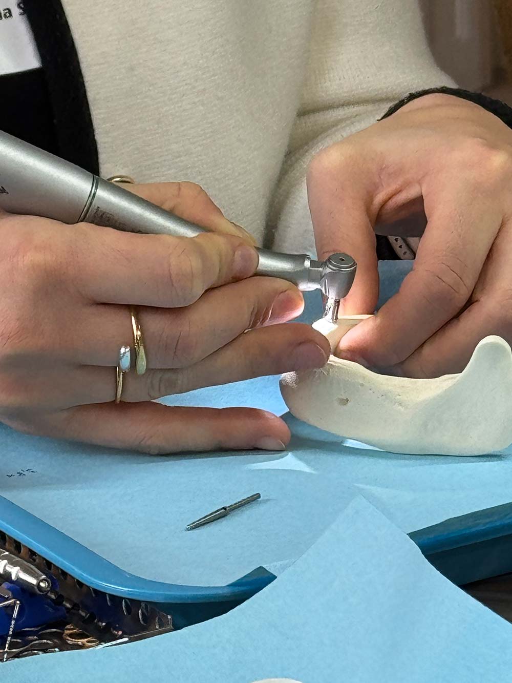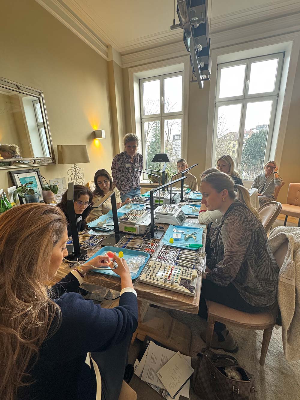 Der Kurs – in diesem Jahr der einzige reine Frauenkurs – war mit sieben Teilnehmerinnen erneut komplett ausgebucht. Es waren wieder sowohl erfahrene Kolleginnen als auch Anfängerinnen in der Implantologie dabei.